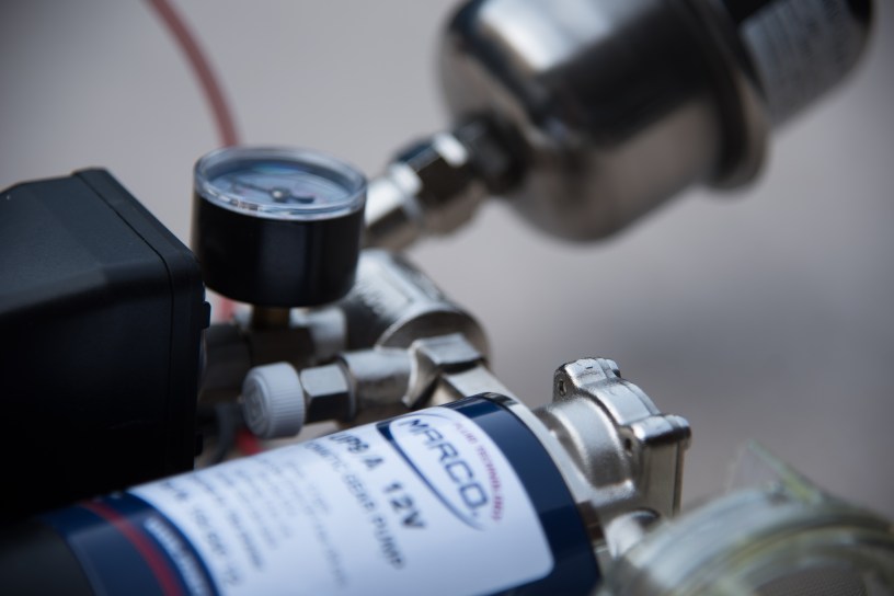 Alle Schläuche, Kupplungen und Verbindungsstücke sind trinkwasserecht. Die Verbindung in den Innenraum wird mittels eines 1/2″ Gewindestückes und beidseitigen Muttern (Sanitärbedarf) geschaffen. Die Entlüftungen und auch der Befüllschlauch werden durch zertifizierte GEKA-Kupplungen mit dem Tank verbunden.